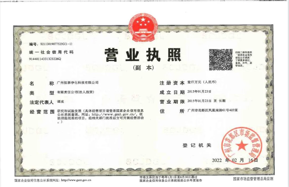 Company Name : Guangzhou Hengtai Purification Technology Co., Ltd.